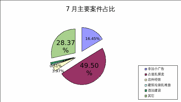 7月份派遣至各市(区)城市管理综合执法局办理的案件共10813宗。截至7月31日,已办结10217宗,未办结596宗,办结率94.49