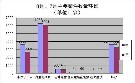 案件类别 | 8月数(宗) | 7月数(宗) | 增/减 | 结案数 | 结案率 | 案件主要类型 |