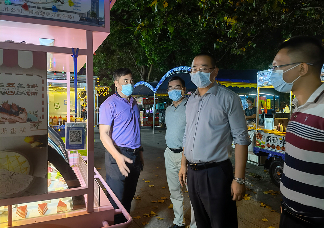 11月16日晚上,为深入贯彻落实党的二十大精神,进一步规范城市管理秩序,保障市容环境卫生,市城市管理综合执法局党组书记、局长周志东带队,对主城区相关夜市集中区域开展调研督导。局党组成员、副局长谭国忠,相关科室负责人,三区政府及城市管理部门、属地街道负责人参加活动。