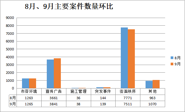 案件类别 | 9月(宗) | 8月(宗) | 增/减(宗) | 结案数(宗) | 结案率(%) | 案件主要类型 |