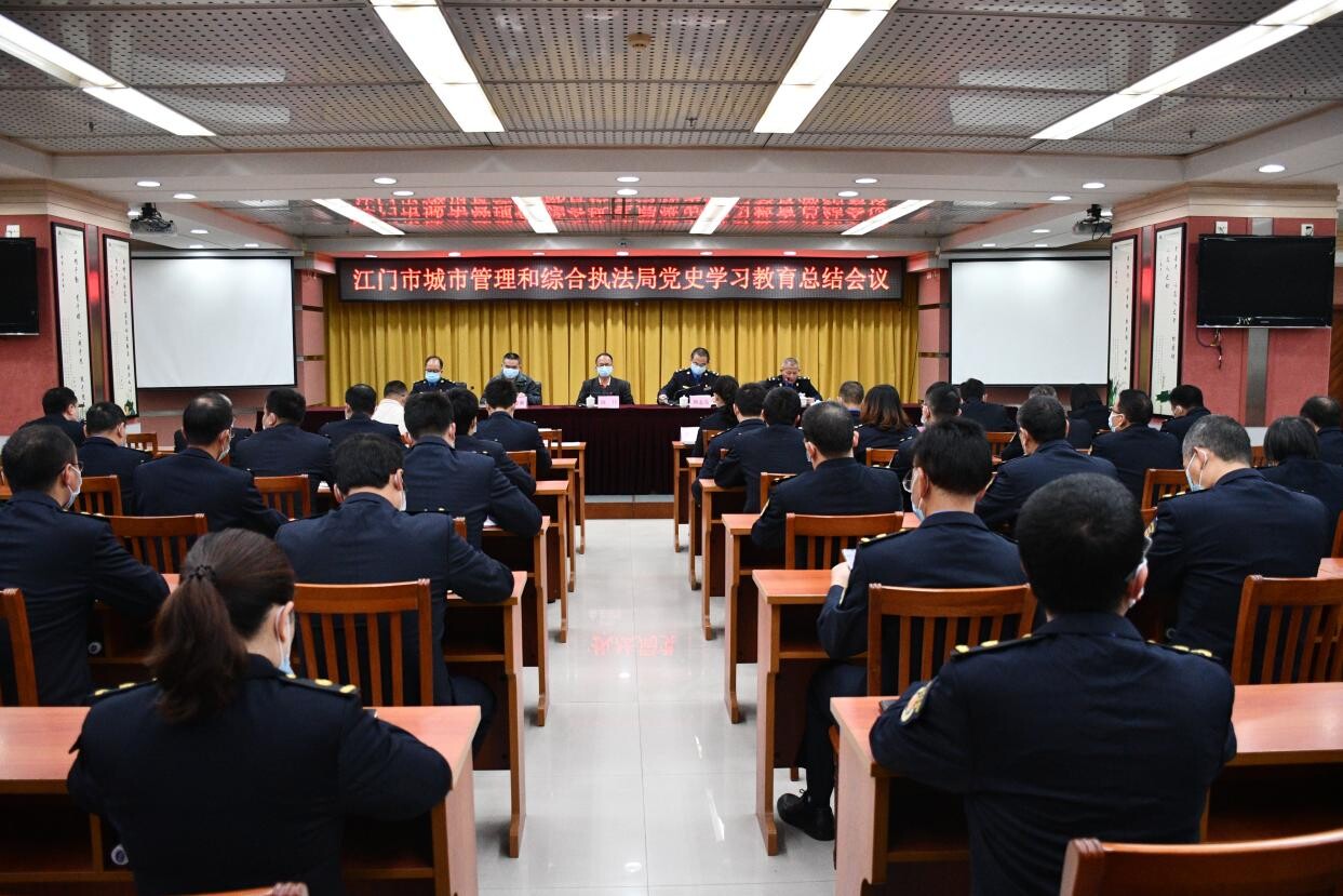 1月19日,江门市城市管理和综合执法局召开党史学习教育总结会议,深入学习贯彻习近平总书记关于党史学习教育的重要指示精神和党中央、省委党史学习教育总结会议精神,总结党史学习教育开展情况,部署安排推进党史学习教育常态化工作举措。市委党史学习教育第七巡回指导组组长陈怀及指导组成员到会指导,市城市管理综合执法局领导班子成员,局机关及市城市管理综合档案馆全体党员干部,市东湖公园管理所中层以上党员干部参加会议。