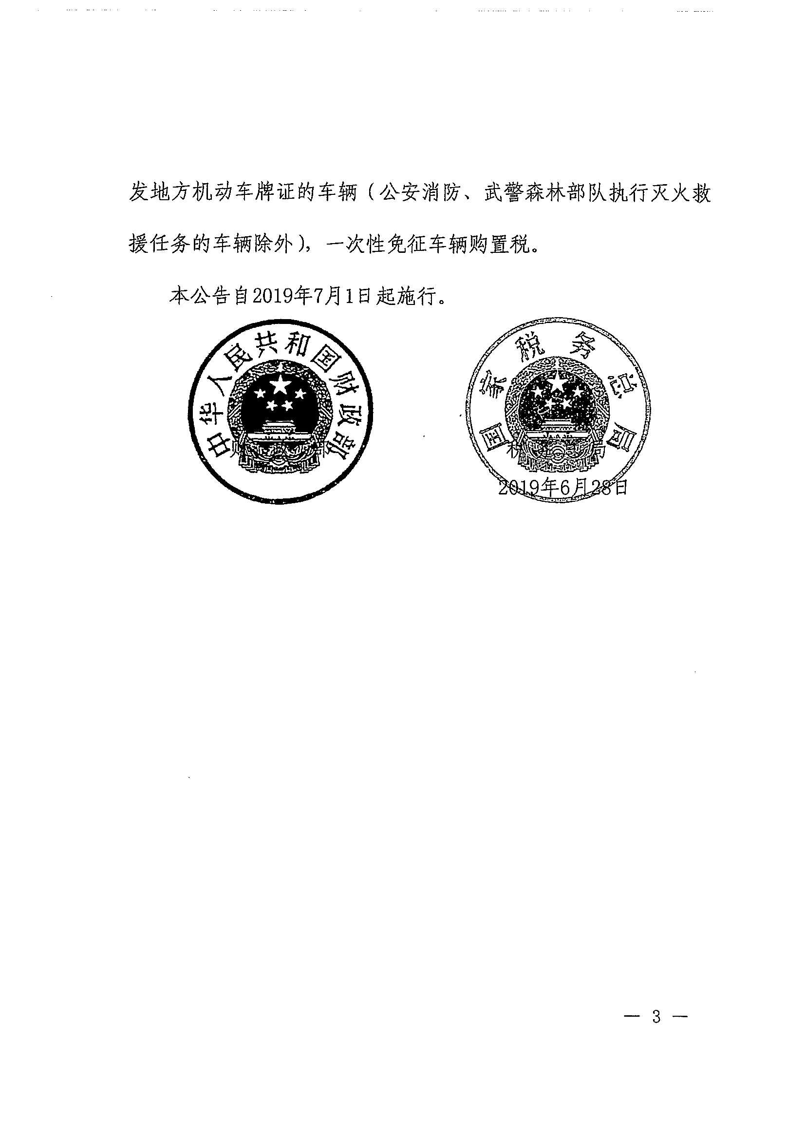财政部 税务总局关于继续执行的车辆购置税优惠政策的公告