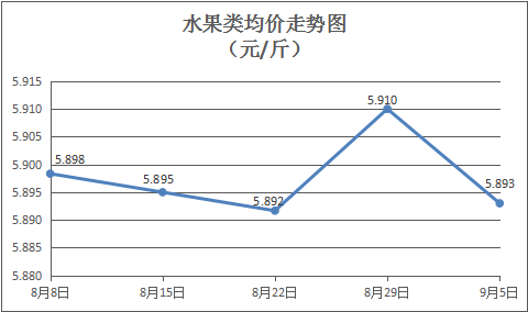 水果类商品价格稳中略降。本周所监测的6种水果商品价格波动情况为1涨1平4跌,综合零售均价为5.893元/斤,环比下降0.28%。其中橙子、葡萄、西瓜零售均价分别为每斤6.26元、11.31元、2.56元,环比分别下降0.32%、上涨0.44%、下降1.92%。