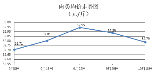 肉类商品价格有所下调。所监测的8种肉类商品价格均下跌,综合零售均价为每斤32.79元,环比下降0.30%。其中:排骨、精瘦肉、牛肉、带骨羊肉零售均价分别为每斤32.72元、20.37元、45.67元、41.48元,环比分别下降0.40%、下降0.78%、下降0.11%、下降0.10%。