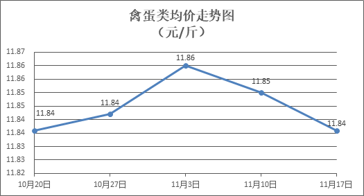 禽蛋类商品价格总体微降。所监测的5种禽蛋类商品价格波动情况为1涨2跌2平,综合零售均价为每斤11.84元,环比下降0.15%。其中:白条鸡、白条鸭零售均价分别为每斤20.38元、15.36元,环比分别下降0.39%、上涨0.13%;鸡蛋、鸭蛋零售均价分别为每斤6.55元、7.71元,环比分别下降0.46%、持平。