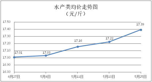 水产类商品价格继续小涨。所监测的9种水产商品价格波动情况为8涨1平,综合均价为每斤17.39元,环比上涨0.99%。其中:草鱼、鲫鱼、罗非鱼、基围虾零售均价分别为每斤11.23元、14.32元、9.15元、30.68元,环比分别上涨0.45%、上涨0.35%、上涨0.11%、上涨0.59%。