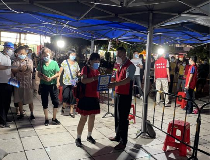 “我是市直机关党员,社区防疫有什么工作?我随时都可以上!”市供销社机关党支部书记得知自己所住区域被划为中风险地区后,第一时间联系社区,主动对接,就地转化为党员志愿者,在管控区域持续开展核酸检测、接转物资等工作。“乖乖跟爷爷待在家,妈咪去社区做志愿服务。”家住江海区临时管控区的社属企业时尚空调党支部党员,将3岁女儿交给老人照顾,自己就地激活投入到村委的志愿服务当中,由于当地志愿者人手不足,连续3天参加防疫志愿服务,每天超过12小时。
