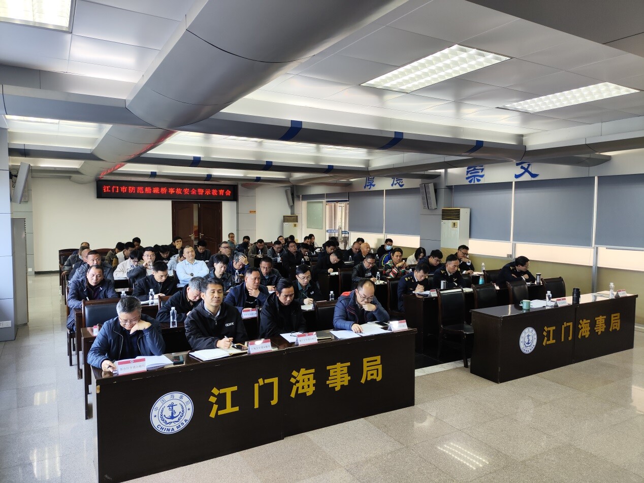 为深刻吸取事故教训,进一步加强防范船碰桥事故工作,3月7日上午,江门市交通运输局会同江门海事局召开全市桥梁业主单位防范船碰桥安全警示教育会,各级海事、交通、航道、公路等监督管理部门、江门辖区通航桥梁管养单位相关负责人共125人参加会议。