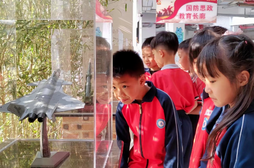 走进开平市金山中学,课室有学生们亲手绘制的国防教育主题黑板报,展示大家国防课堂的学习成果;在恩城中心小学,国防知识宣传长廊常常吸引学生们来此参观学习……江门各大中小学国防教育氛围日益浓厚。