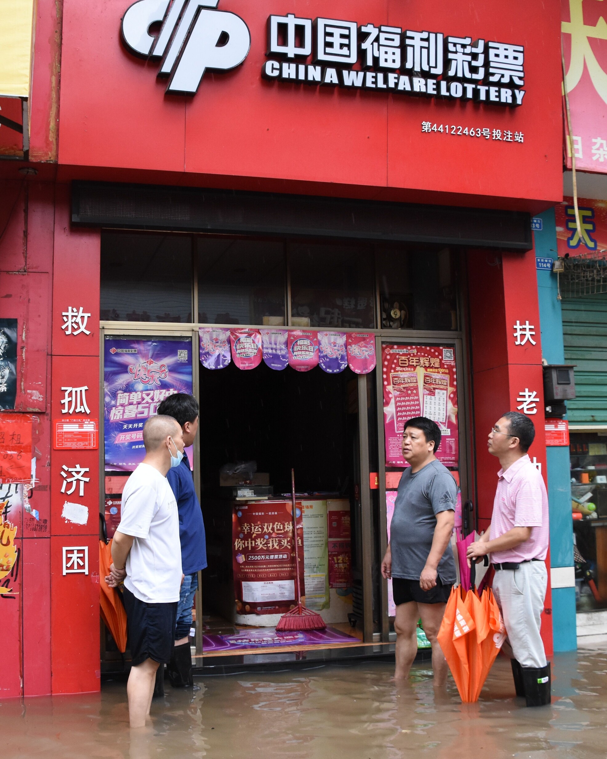 6月23日早上,受强降雨云团影响,开平市发布红色暴雨预警,水口镇遭受强降水突袭,多处地方出现内涝,位于低洼路段的4个福彩投注站受到不同程度水浸影响。