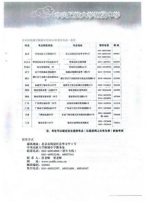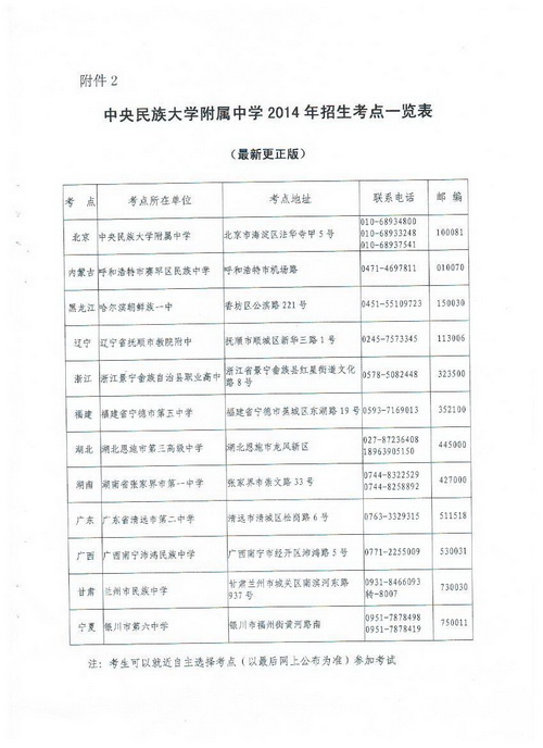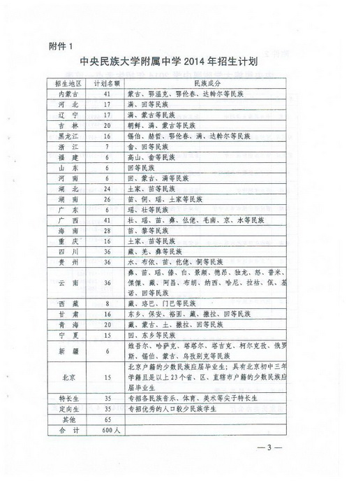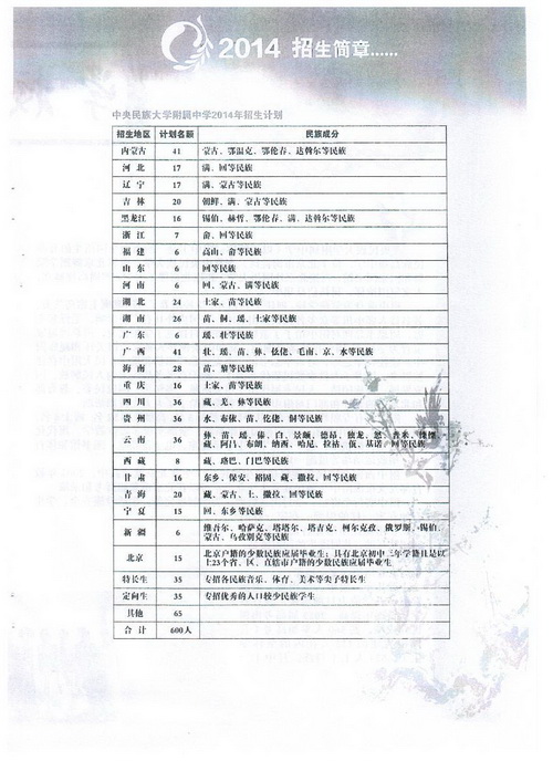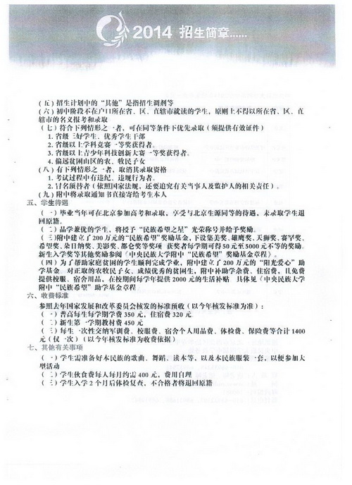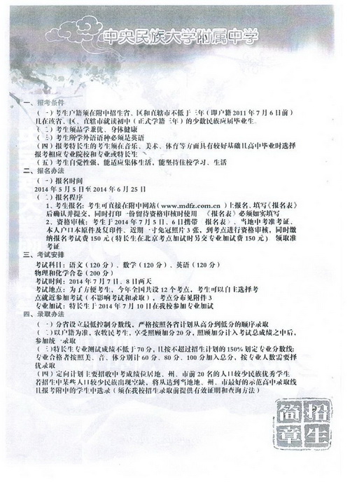 2.中央民族大学附属中学2014年招生简章