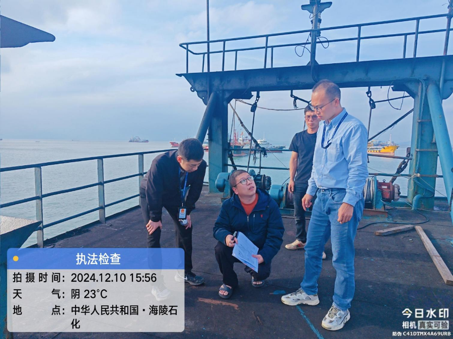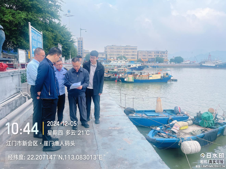 12月5日,市海洋综合执法支队副支队长钟树年陪同省总队领导到新会区崖门渔港开展渔船安全检查工作。
