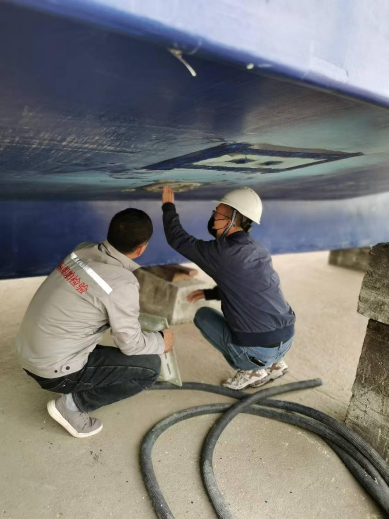 1月8日,市海洋综合执法支队到台山市汶村镇渔船建造企业开展渔船检验工作。