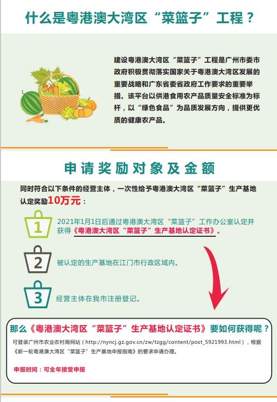 政策原文:江门市关于获得粤港澳大湾区“菜篮子”生产基地认定的奖励办法