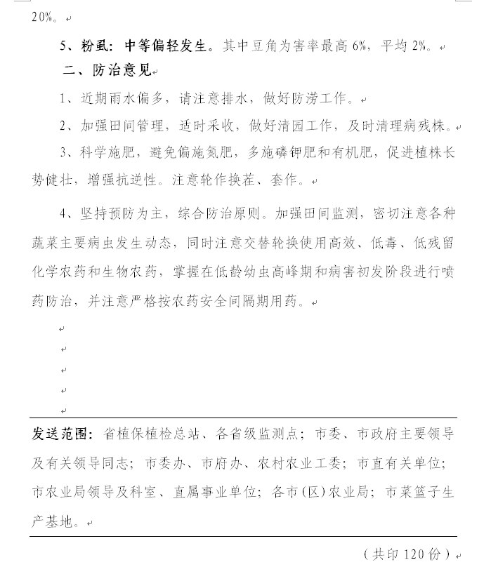 4月份蔬菜病虫发生趋势及防治意见(农作物病虫情报第七期)