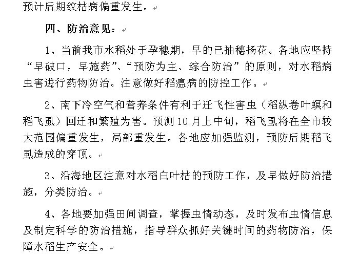 2014年农作物病虫情报第十九期(晚稻中后期病虫发生动态与防治意见)