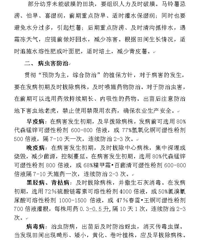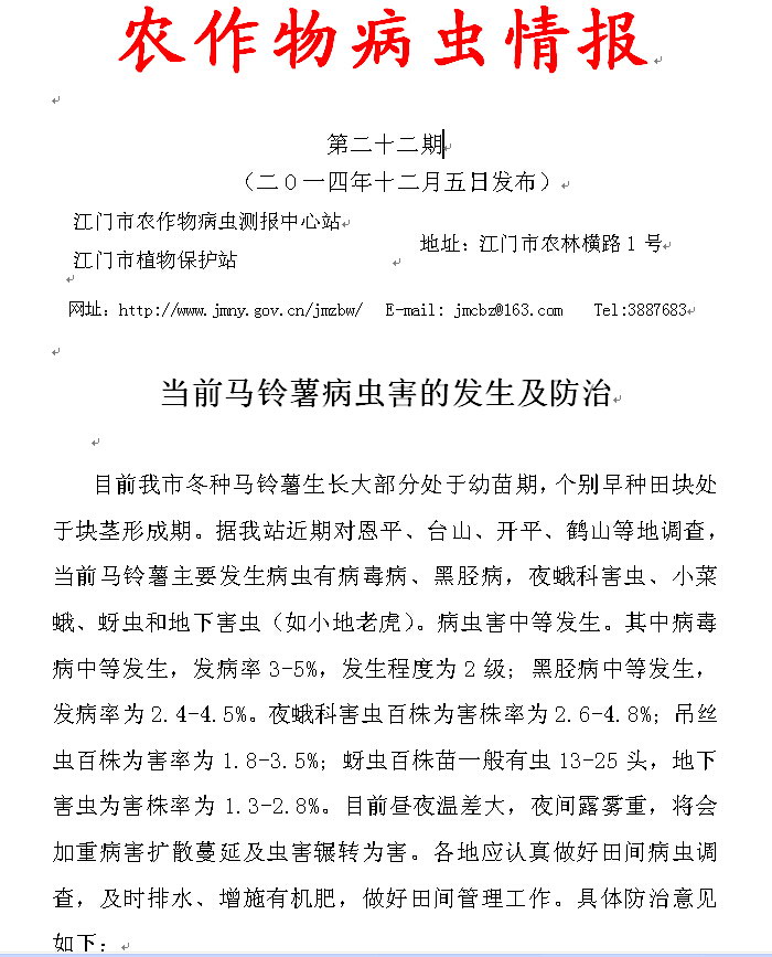 农作物病虫情报第二十二期(当前马铃薯病虫害的发生及防治)