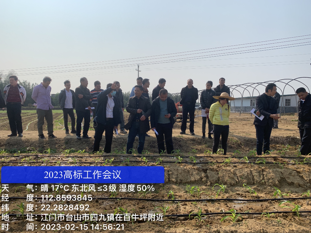 2月15日,江门市农业农村局组织召开高标准农田现场会暨农田建设工作会议。现场学习了2022年度台山市四九镇高标准农田高效节水灌溉示范项目建设经验。市农业农村局三级调研员黄伟民及有关工作人员、各县(市、区)农业农村部门农田建设工作分管负责同志及相关股室同志参加。