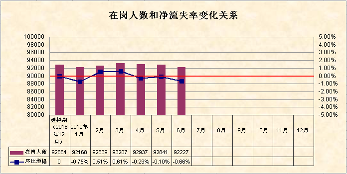 (四)全市就业失业情况无异常变动。全市200家失业动态监测企业第二季度监测数据显示,企业在岗职工与上年底建档期相比下降0.99%,用工结构没有出现大幅变动,未发现有大规模裁员和减员现象,人员流失率处于正常范围。