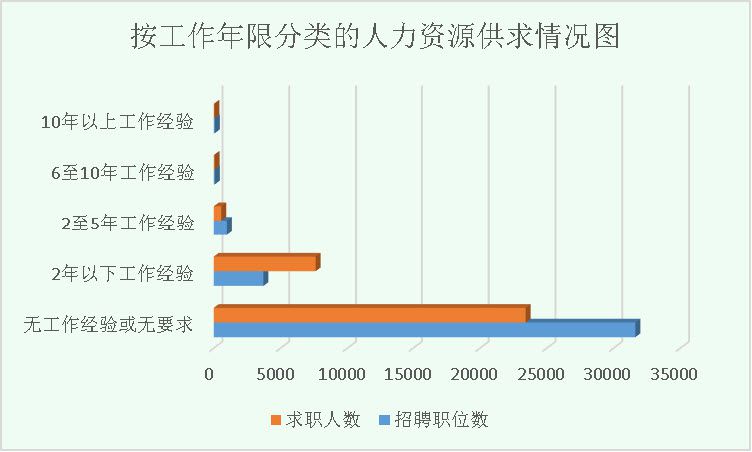 第二季度,对求职者工作经验无要求的招聘职位数占本季度招聘职位数总量的86.62%。造成这个现象的原因主要有:一是在目前企业招工难的大环境下,企业为了满足日常生产作业的需要,往往会在招聘后进行岗前的技能培训;二是目前招聘岗位对劳动者的技能要求不高,大部分岗位在劳动者接受岗前培训后便能上岗。