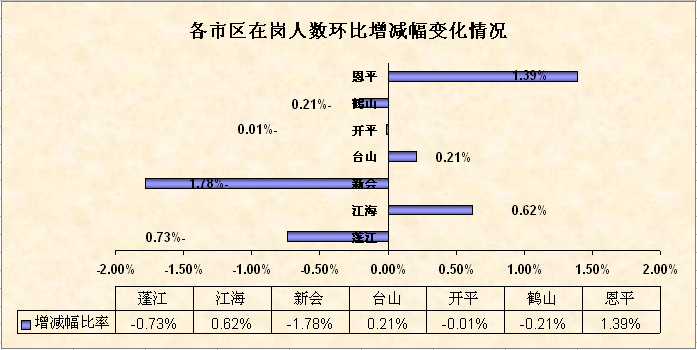 表13.各市区在岗人数环比增减幅变化情况表