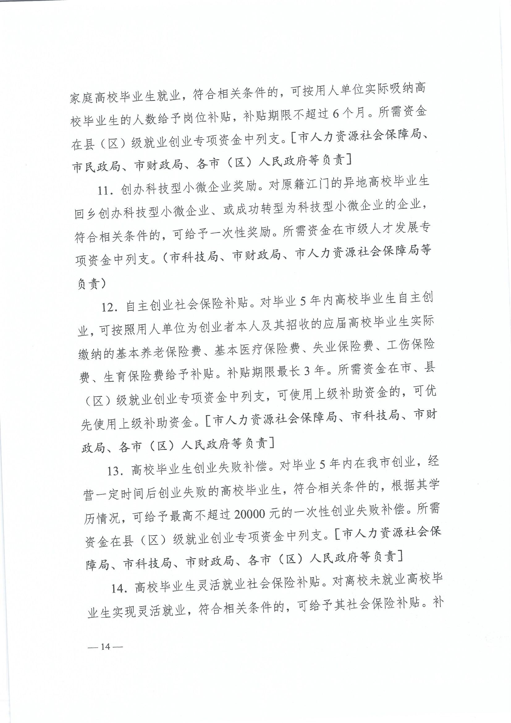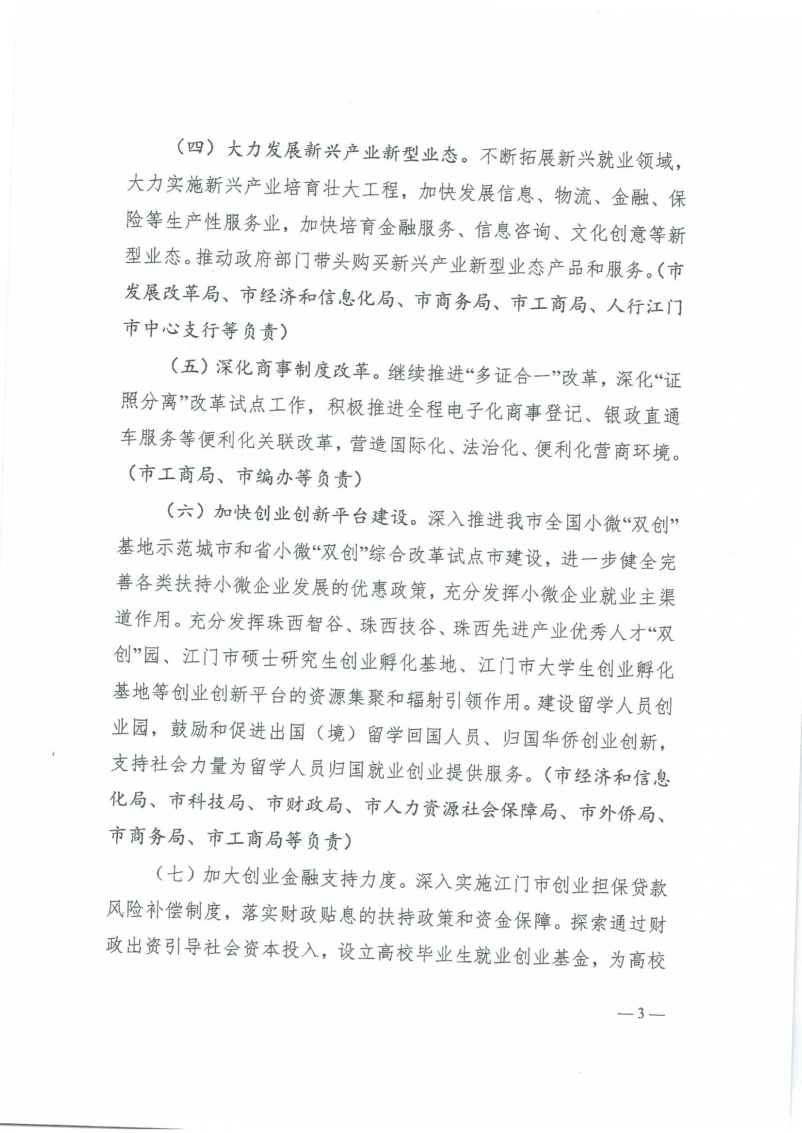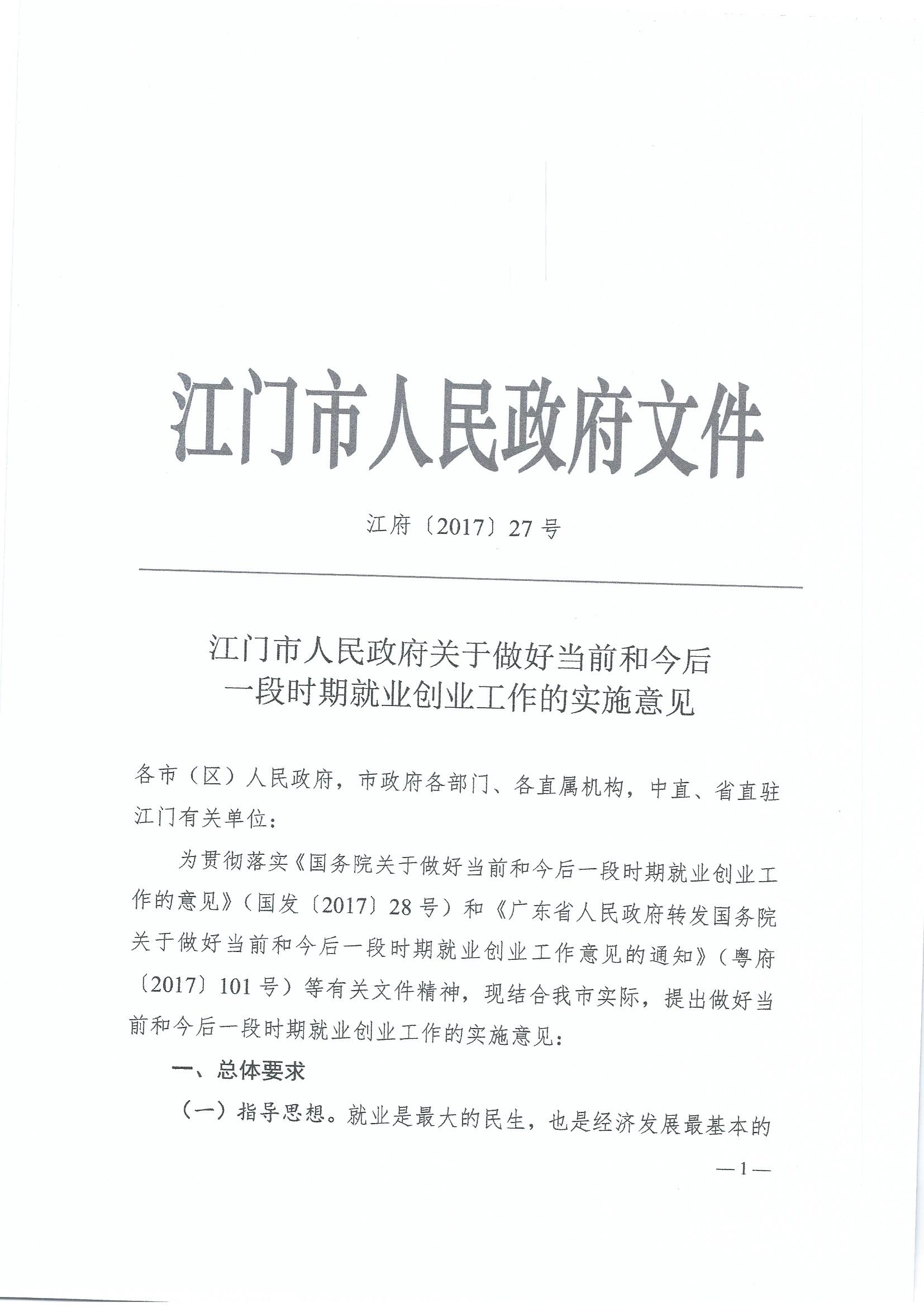 江府〔2017〕27号_江门市人民政府关于做好当前和今后一段时期就业创业工作的实施意见