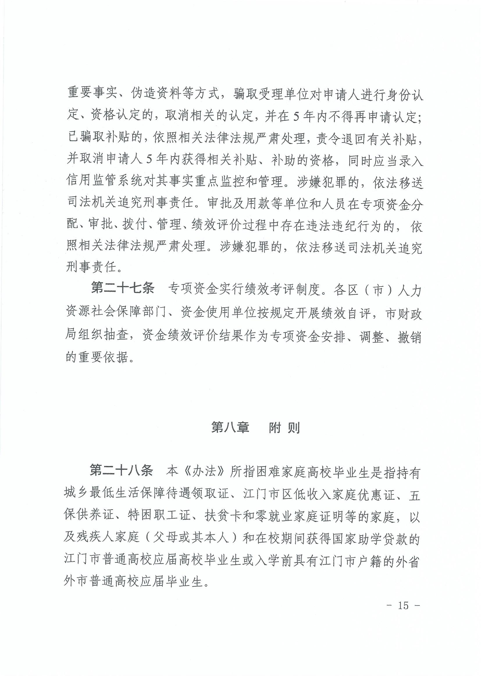 江人社发[2016]355号_此件为准 关于印发《江门市市级就业创业专项资金管理办法》的通知