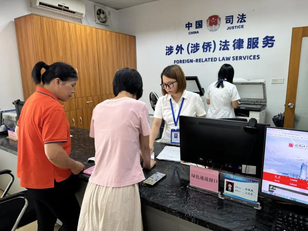 发挥村(社区)法律顾问“贴心人”作用,严格落实法律顾问值班制度,通过线上提供非现场法律服务。目前,鹤山市已实现10个镇(街)139个村(社区)法律顾问全覆盖,为回乡侨胞提供“家门口”的公共法律服务,打通便民服务“最后一公里”。优化服务模式,在鹤山市公证处设立“涉侨法律服务”窗口,推出“容缺办”“一次办”等多项服务举措,实现“一站式”公证办理,并配备专职翻译人员,提供代办翻译、认证等延伸服务,强化涉外公证服务供给能力。今年以来,鹤山市公证处共办理涉外公证940件,涉港澳台公证171件,进一步做优做强涉外涉侨服务。