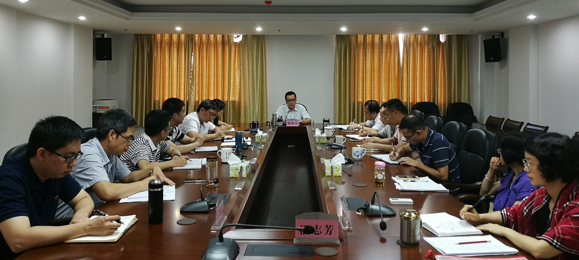 局党组书记、局长陈新汉主持会议,首先传达了市委十三届四次全会主要精神及林应武书记、刘毅市长的重要讲话精神,强调全会是我市在全面建成小康社会关键时期召开的一次重要会议,对全市今后发展有着十分重要的指导意义,更为审计工作指明了方向。要求全市审计机关要把学习贯彻全会精神作为当前的一项重要政治任务来抓,迅速掀起学习贯彻全会精神的热潮,自觉将思想和行动统一到市委的决策部署上来,依法履职,积极作为,更好地发挥审计的监督和保障作用,更好地服务江门改革发展。