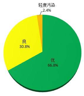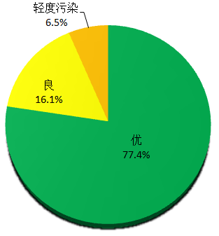 2019年1-7月江门市区环境空气质量较去年同期有所改善,综合指数下降12.9%,空气质量优良天数比例为95.8%,与去年同期相比,优良天数比例上升8.1个百分点,其中轻度污染天数比例为4.2%(9天),无中度、重度和严重污染天气。除一氧化碳外,其余五项污染物平均浓度均有所下降,其中PM2.5平均浓度为23微克/立方米,同比下降20.7%;PM10平均浓度为41微克/立方米,同比下降16.3%;SO2平均浓度为6微克/立方米,同比下降33.3%;NO2平均浓度为28微克/立方米,同比下降3.4%;CO日均值第95百分位浓度平均为1.4毫克/立方米,同比上升27.3%;O3日最大8小时平均第90百分位浓度平均为123微克/立方米,同比下降19.6%;臭氧为首要污染物。全省排名第15位,珠三角9市排名第5位(详见附件)