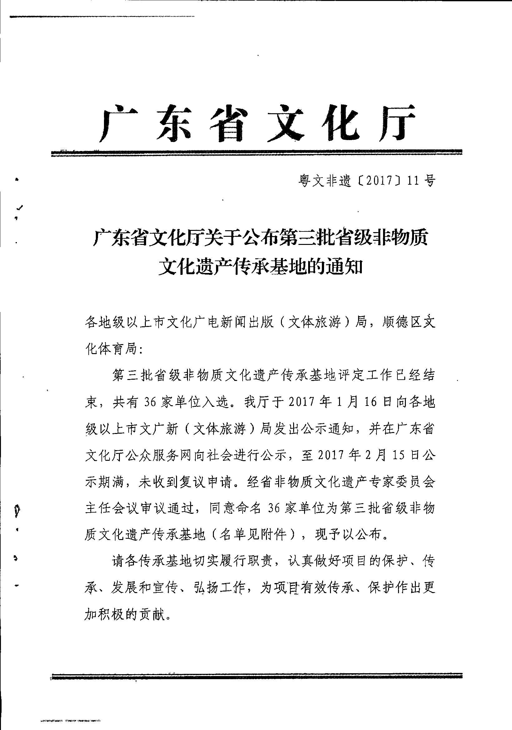 【文件】转发广东省文化厅关于公布第三批省级非物质文化遗产传承基地的通知(江文艺〔2017〕28号)