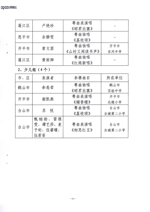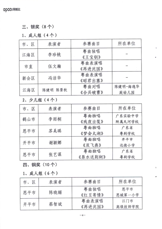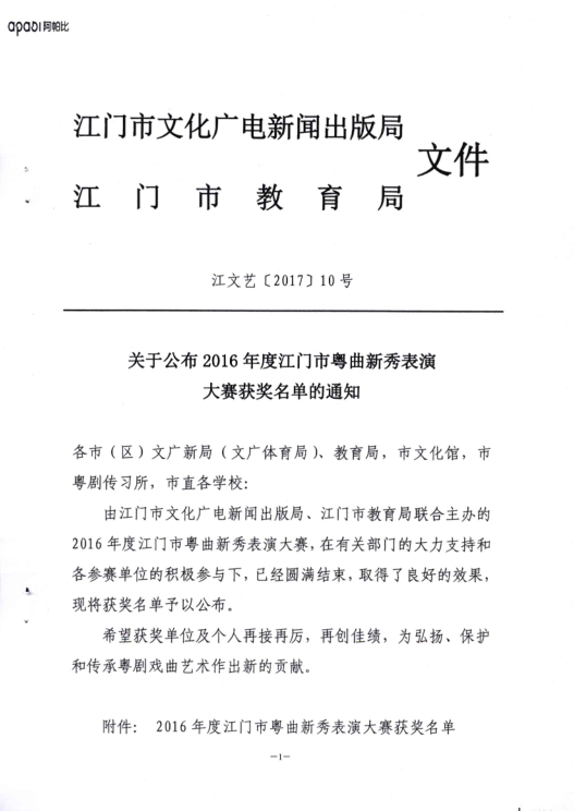 【文件】关于公布2016年度江门市粤曲新秀表演大赛获奖名单的通知(江文艺〔2017〕10号)