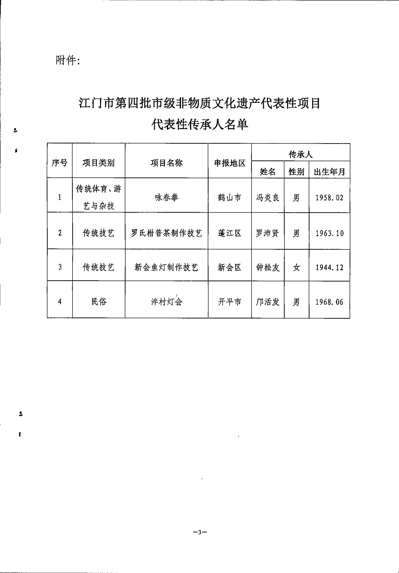 【文件】关于公布江门市第四批市级非物质文化遗产代表性项目代表性传承人名单的通知(江文艺〔2016〕68号)