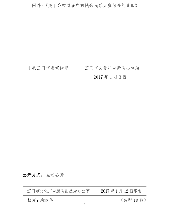 【文件】转发关于公布首届广东民歌民乐大赛结果的通知(江文艺〔2017〕6号)