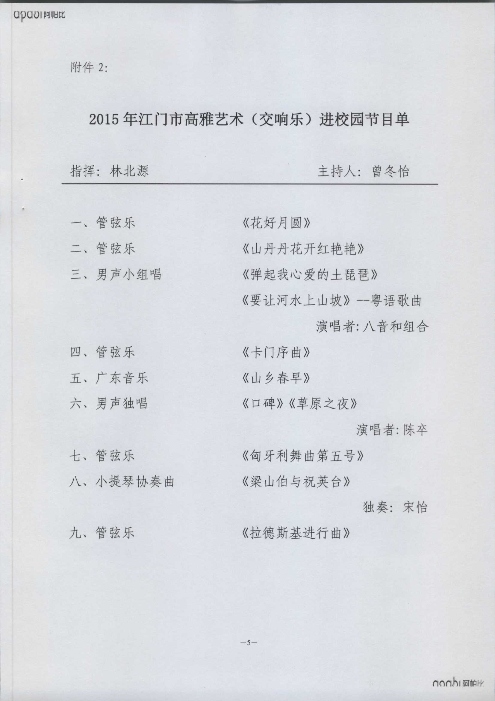 关于举办2015年江门市高雅艺术(交响乐)进校园活动的通知(江文艺〔2015〕122号)