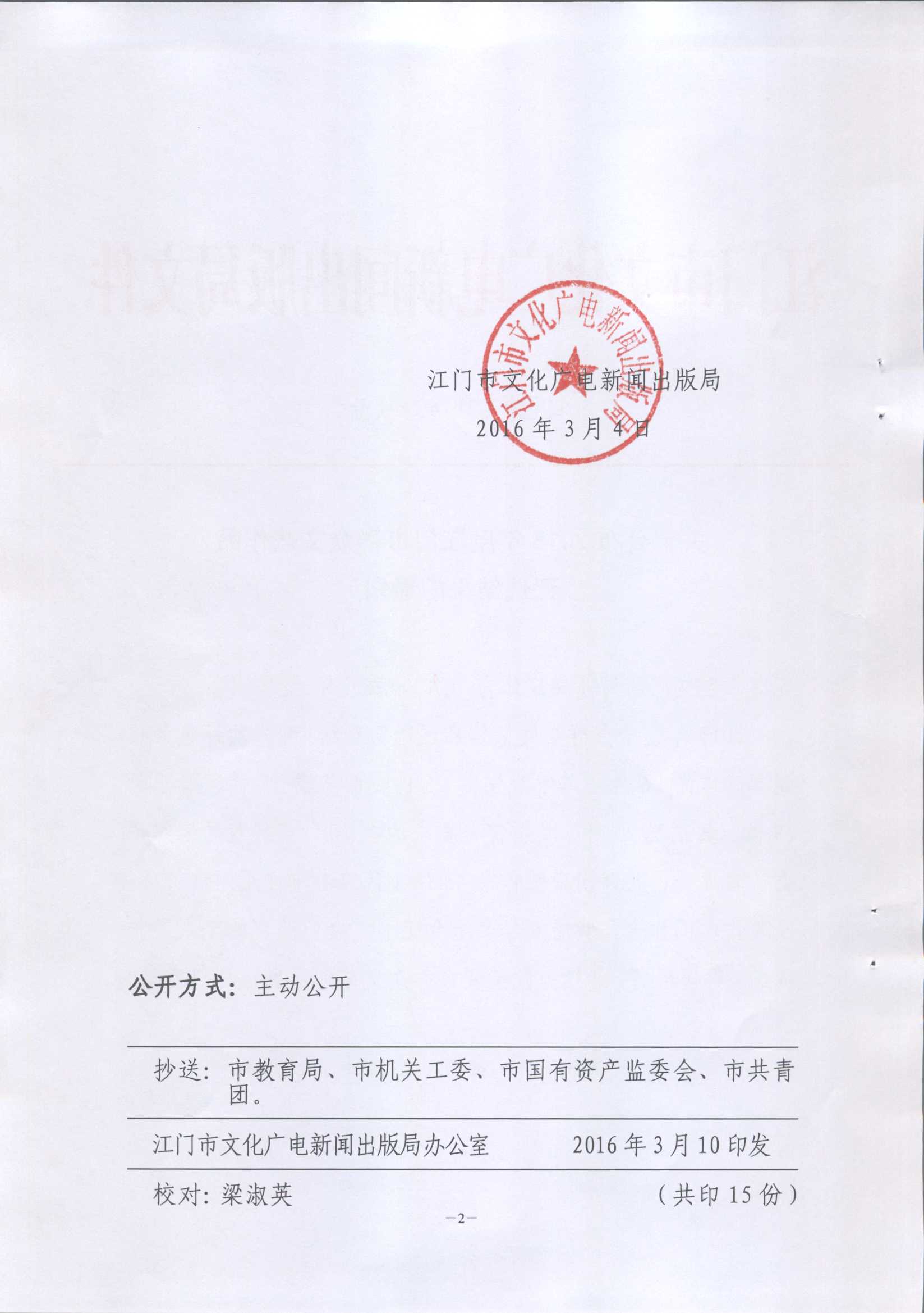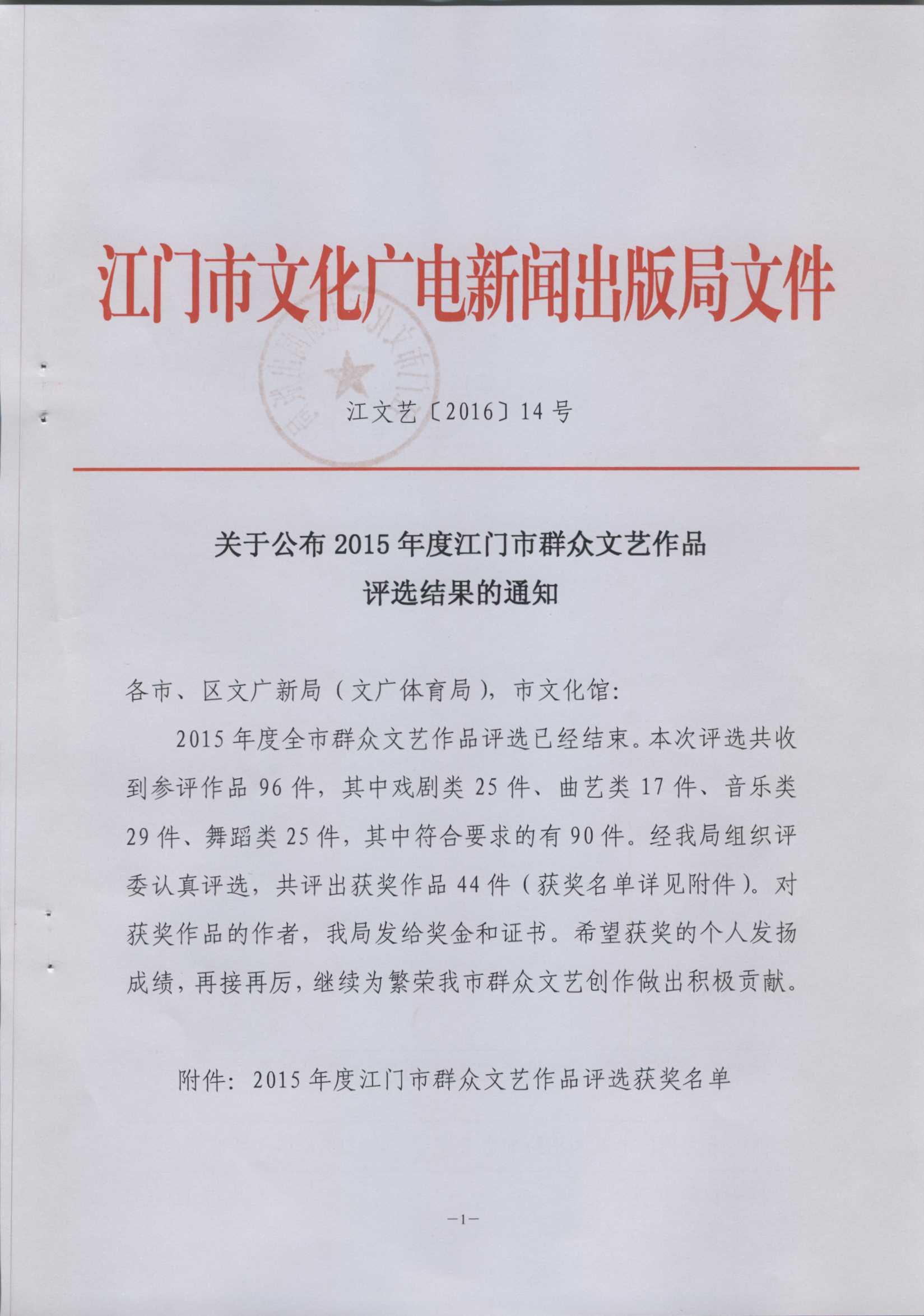 【文件】关于公布2015年度江门市群众文艺作品评选结果的通知(江文艺〔2016〕14号)