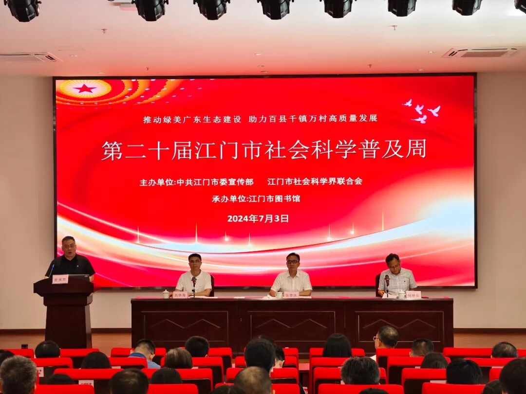 7月3日下午,第二十届江门市社会科学普及周活动在江门市图书馆南楼报告厅举行。市委宣传部副部长、市委网信办主任张荣池出席并致辞,市社科联党组书记、主席杨林贵出席并讲话,市社科联党组成员、副主席吕华海作主持。社科普及基地代表、社科团体代表、媒体记者等参加活动。