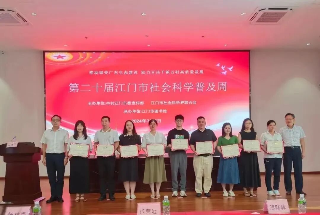 市社科联党组成员、副主席吕华海总结了社科普及基地的工作情况,并宣读了《关于2023年度江门市社科普及基地考核评估情况的通报》。江门市图书馆等九个单位荣获2023年度江门市社科普及“优秀基地”。与会领导现场为优秀普及基地颁发证书!