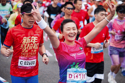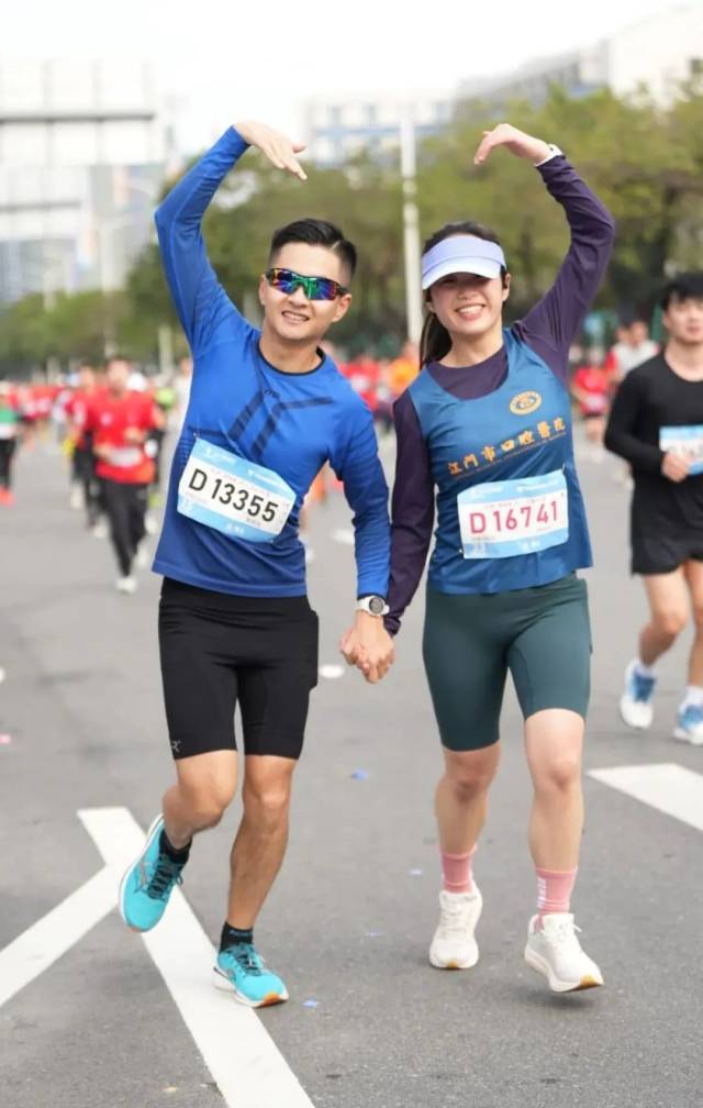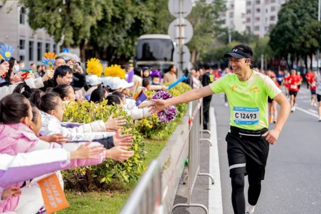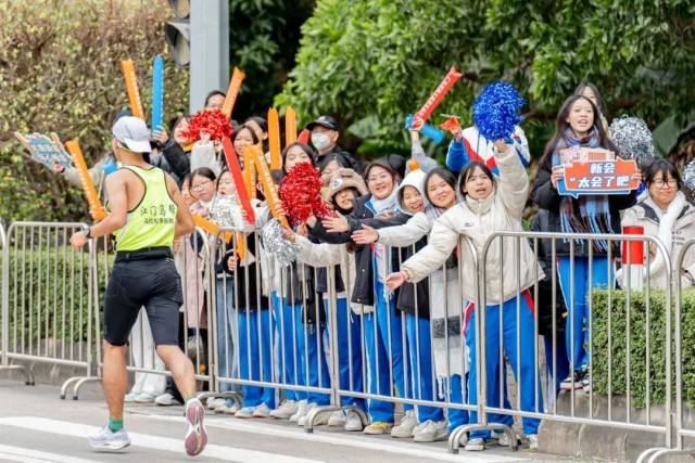 赛道上,英姿飒爽的选手们奋勇争先,赛道旁,热情好客的江门市民们也激动不已,自发组成啦啦队,欢呼声、呐喊声、加油声、鼓掌声此起彼伏,为选手们加油鼓劲,江门,再一次因马拉松而沸腾!更有新人夫妇毅然调整接亲时间,支持马拉松赛事。市民们用满满的诚意与热情,为赛事注入了温暖而强大的力量。