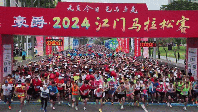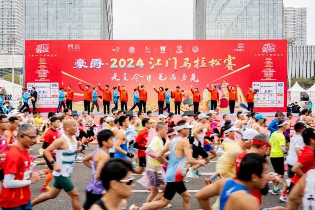 2024江门马拉松赛由中国田径协会认证,广东省田径协会指导,江门市人民政府主办,广东省豪爵慈善基金会冠名赞助,路越(上海)体育发展有限公司运营。江门市委副书记、市长吴晓晖,广东省田径项目中心主任吴舜珊,江门市大长江集团有限公司党委副书记仵岩等领导嘉宾共同出席起跑仪式,为大赛鸣枪发令。
