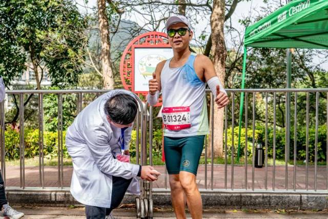 赛事当天,江门市全力落实各项保障措施,确保赛事顺利举办,安全有序。赛道内每2.5公里设1个医疗站安排1辆救护车,共安排了24个医疗站、24辆救护车、43组骑行救护队(86人)、40名急救跑者、592名医疗观察志愿者,并配置88台AED,确保出现紧急情况时能在黄金3分钟内采取应急措施,保障参赛者的生命安全。