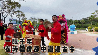 参赛选手一路向前,精彩节目一路相伴。32个氛围点各具特色,戴爱莲舞蹈表演、醒狮大头佛表演、梁家拳武术表演等江门特色节目轮番上阵,各支队伍热情展演,为选手们加油助威,锣鼓声、欢呼声此起彼伏,赛道气氛瞬间被点燃。不止为赛场上的选手一扫疲劳,也充分展示了江门市丰富的文化多样性和地方特色。