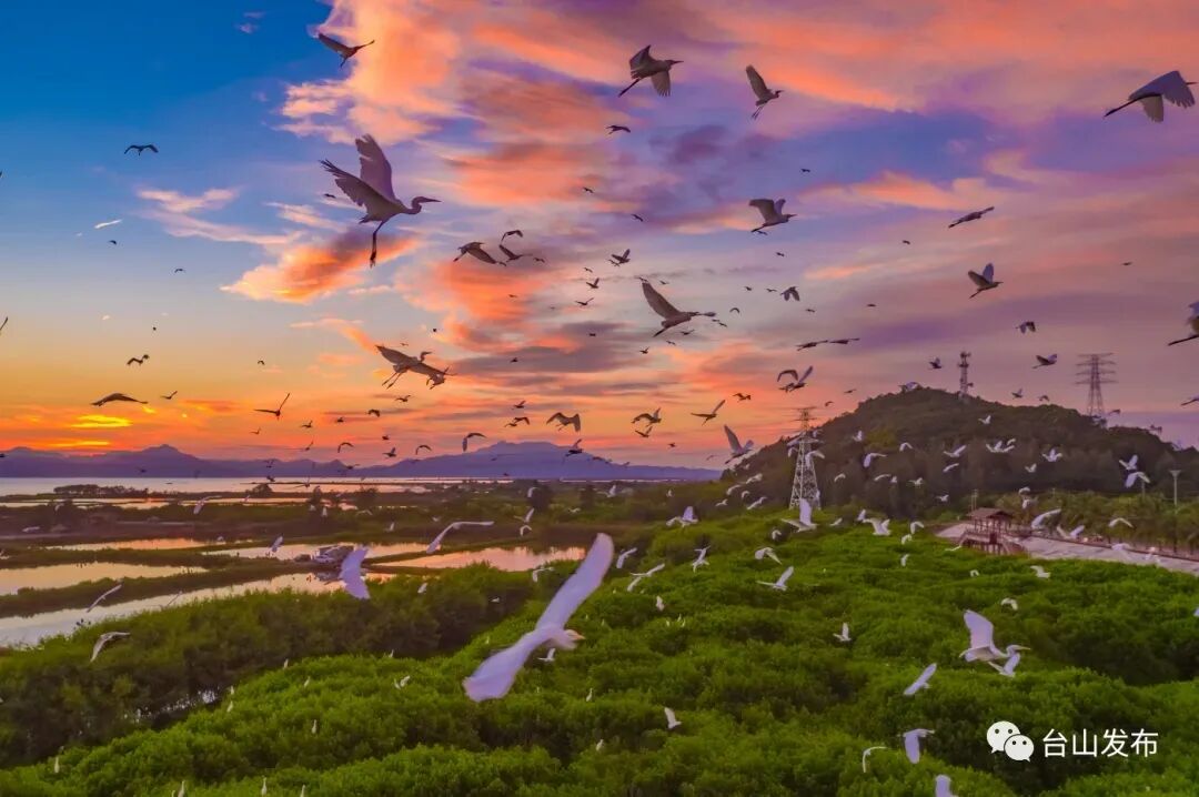 这里原本是一片滩涂,2009年海宴镇在这里种下300多亩红树林,如今这片红树林成了候鸟乐园,成千上万的鹭鸟在这里栖息。