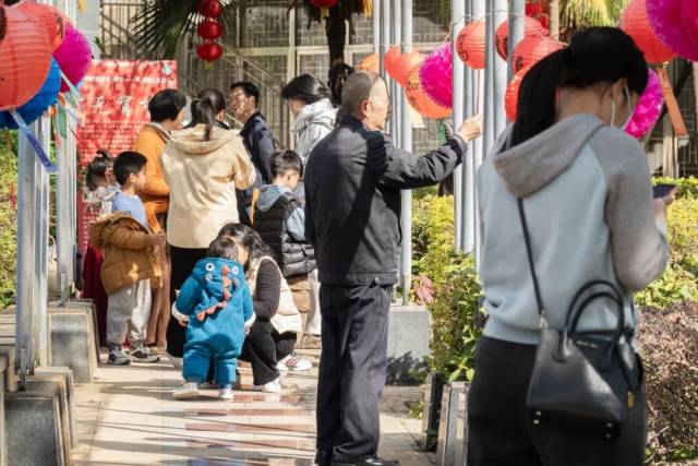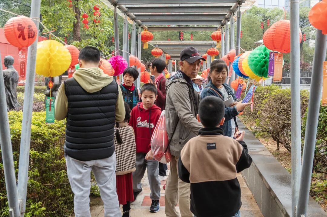 活动现场,一排排五彩缤纷的灯笼下悬挂着精心准备的灯谜,谜面内容丰富多样。市民游客驻足灯谜前,或凝神思索,或小声讨论,猜中谜底后,脸上洋溢着喜悦的笑容,传统文化在互动中得以传承与发扬。