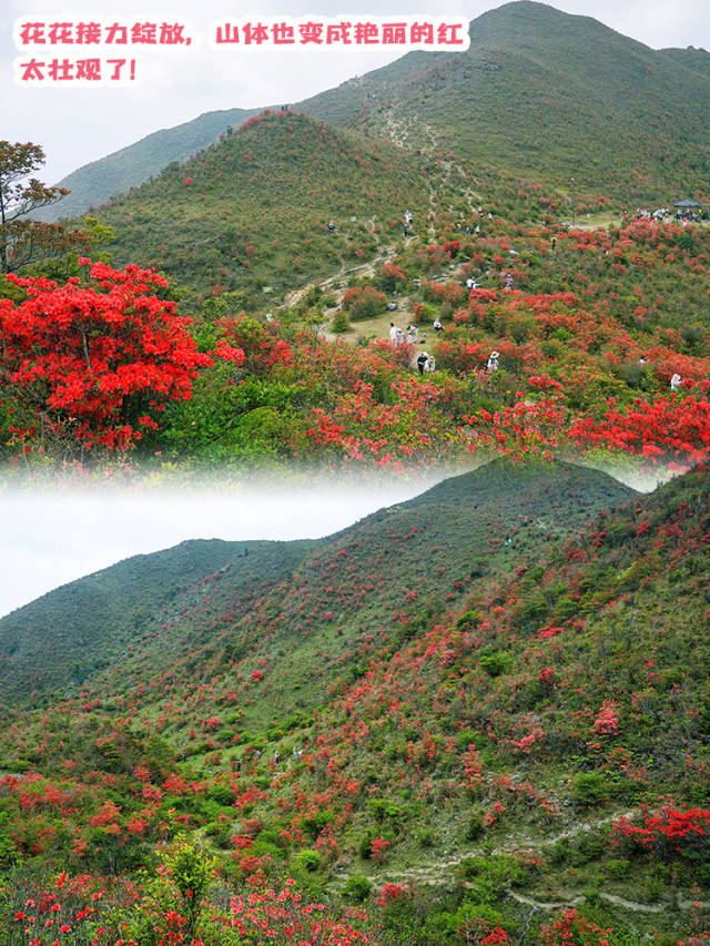 进入4月,江门最盛大的花海——以山谷为单位的开平天露山杜鹃花迎来盛花期。春日赏花,杜鹃是不可或缺的主角。杜鹃花,很多地方都有。然而,想看到可以用“壮观”一词来形容,还得是江门开平天露山杜鹃。