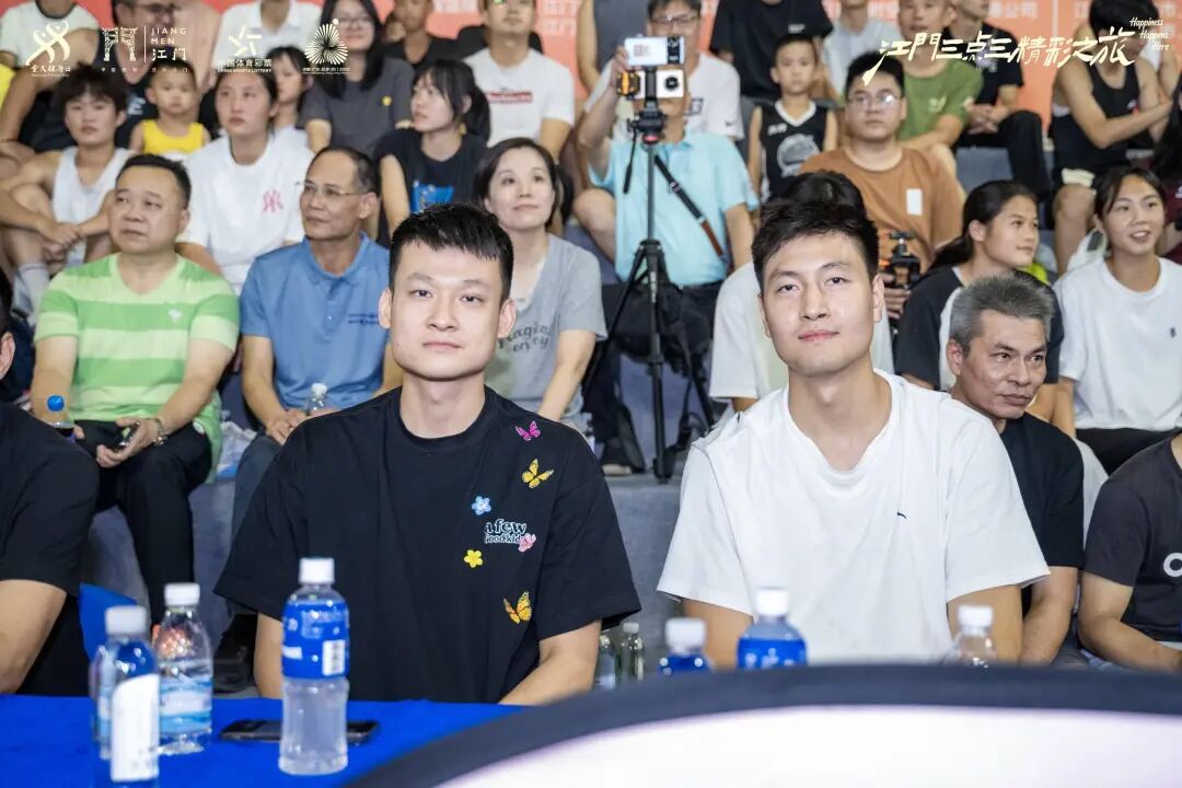 在总决赛之夜,江门篮球热潮再升级!前CBA球员、广东省男子篮球联赛江门队核心主力球员庄战,和2020年国内篮球选秀状元、江门市篮球形象代言人区俊炫亲临现场,与球迷热情互动,掀起阵阵欢呼!