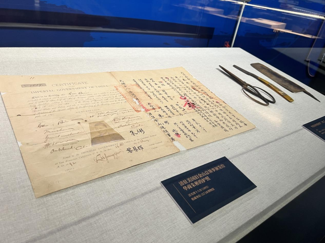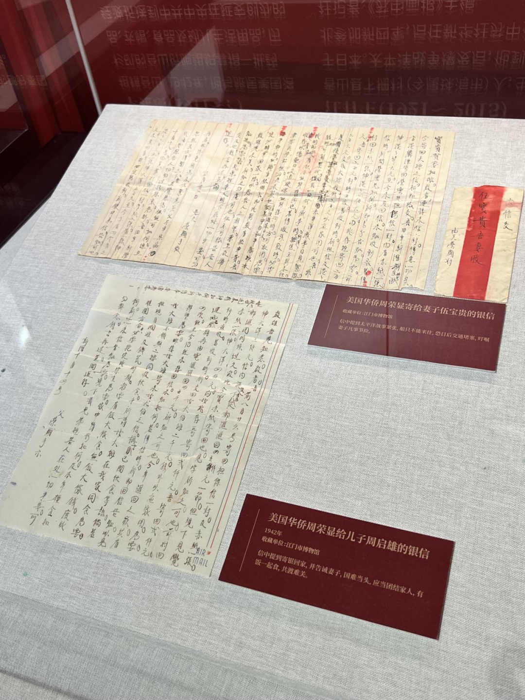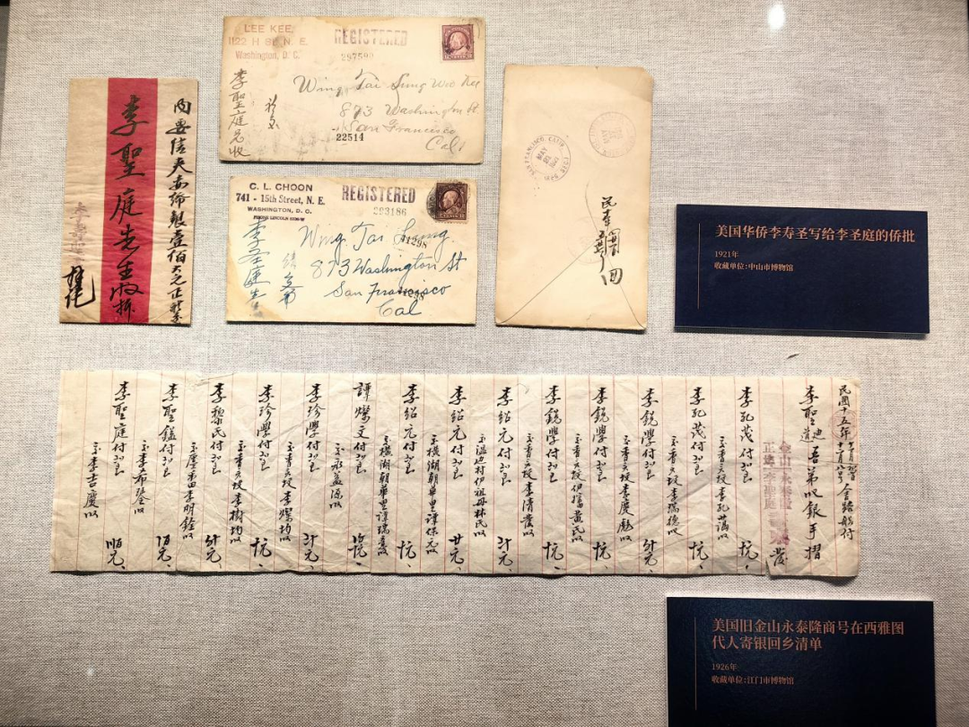 在江门市博物馆与中山市博物馆的不同展品中,出现了同一个华侨的名字(下图),这既是奇妙的巧合,也是两馆业务交流的成果体现。