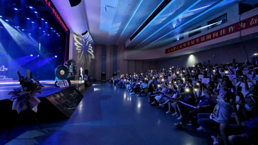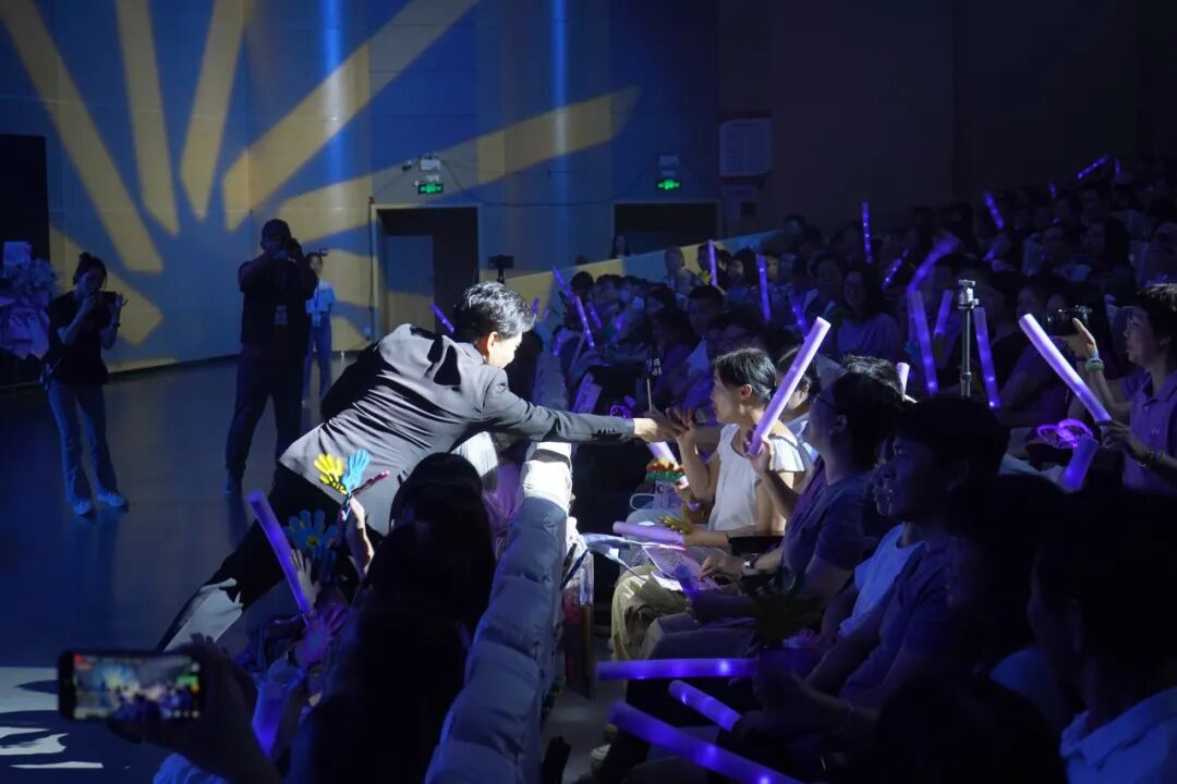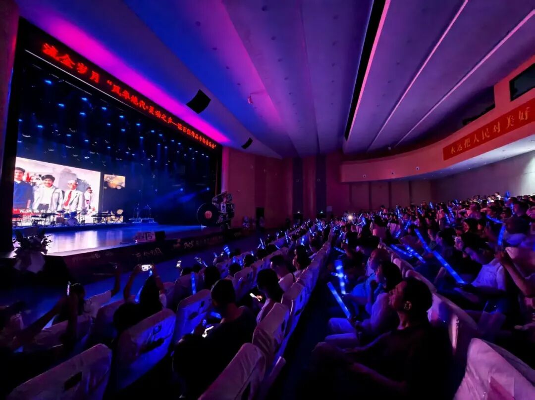 音乐会的旅程,始于回顾Danny璀璨生涯与赤子之心的《偏偏喜欢你》MV。短片中的他,光芒万丈亦心系故土,瞬间将观众带回那个凝结着青春和梦想的“流金岁月”。随后,来自江门的新生代实力歌手们倾情演绎,那些刻入灵魂的旋律次第绽放,掀起了一波又一波怀旧热潮。演出现场座无虚席,掌声雷动,荧光闪烁,六百余人合唱的震撼场面,无不印证着经典的永恒魅力和陈百强大爱精神的强大感召。