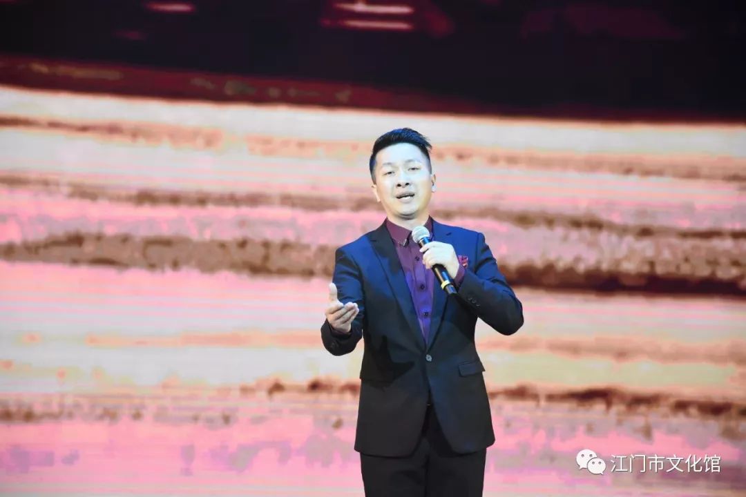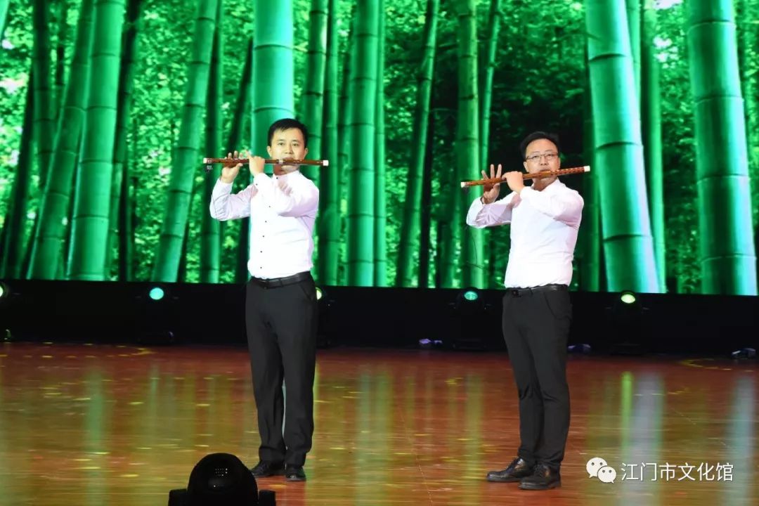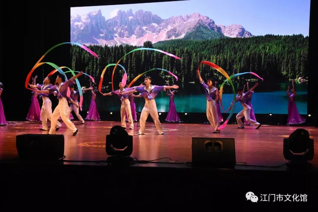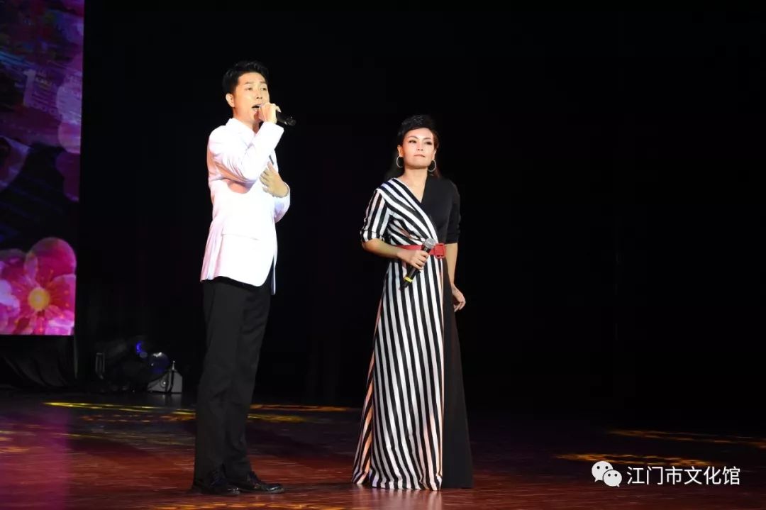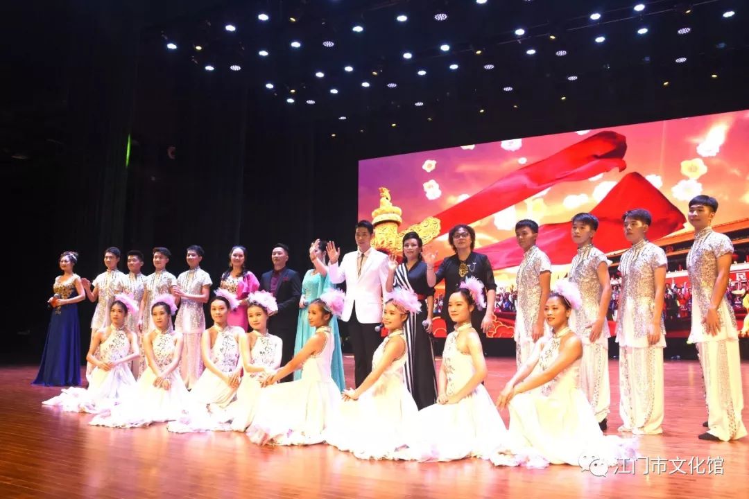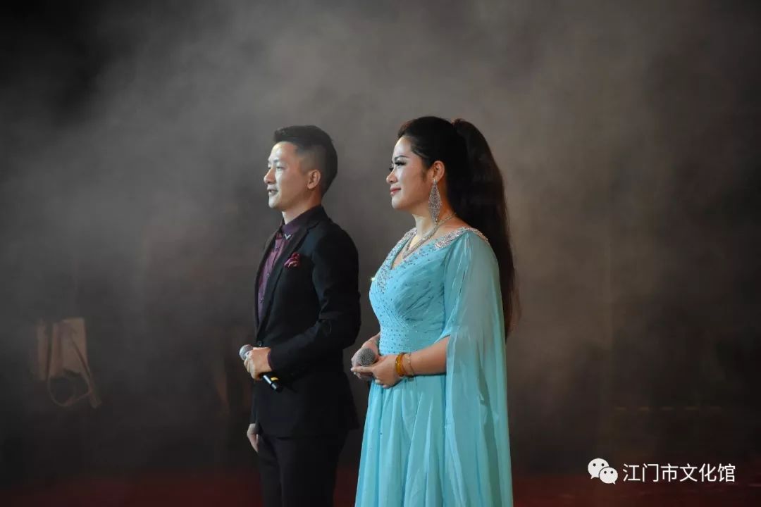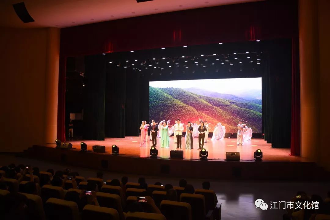 9月16日晚,五邑华侨广场上星光熠熠、灯火璀璨,江门市文化馆新馆二楼的文化剧场内乐声悠扬、歌舞升平,江门市文化馆新馆开馆系列活动之“我和我的祖国”——“欢天喜地”大型歌舞晚会正在这里欢乐上演。