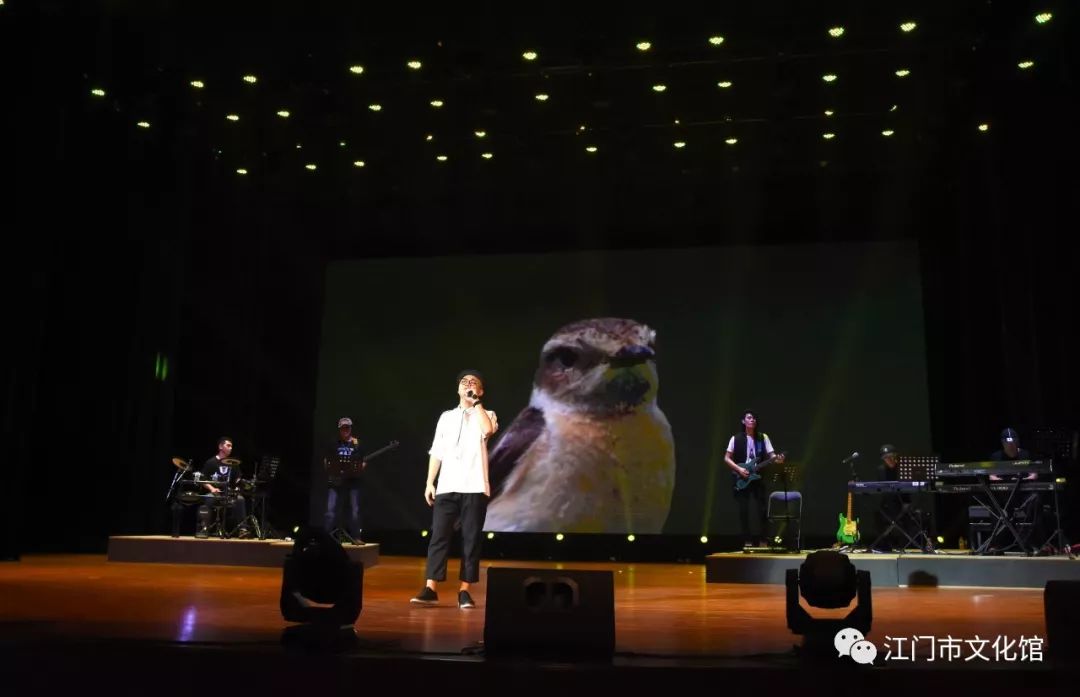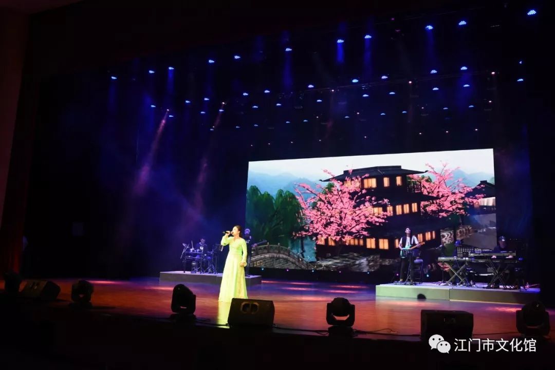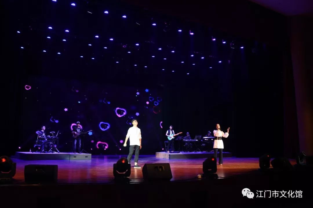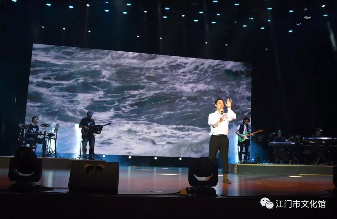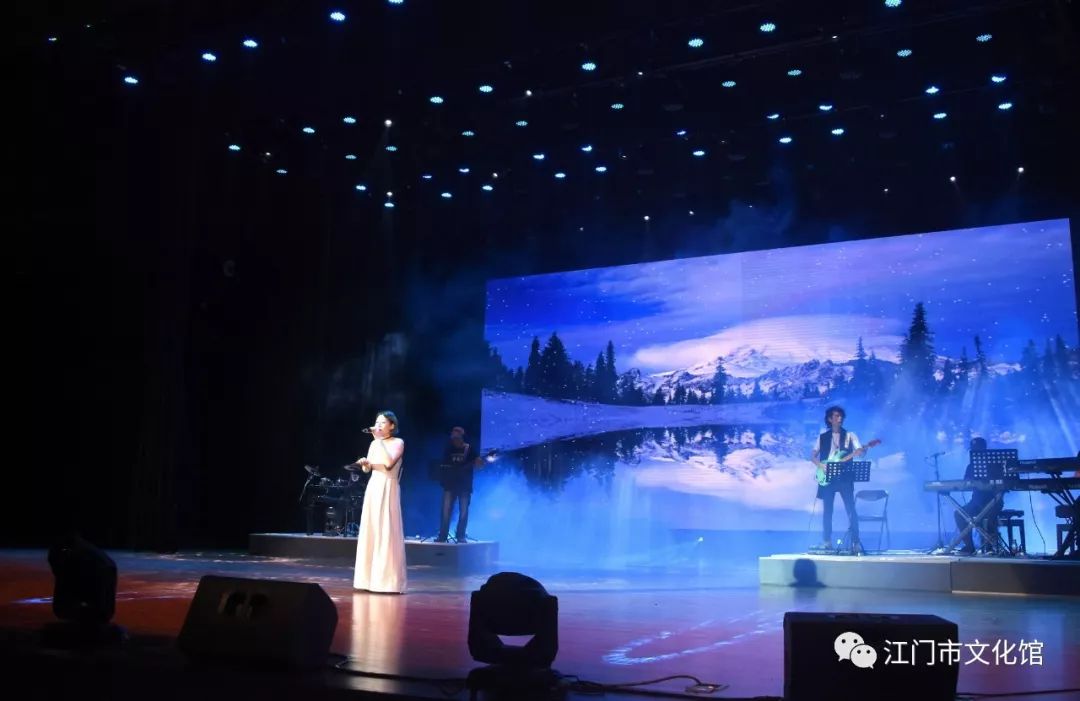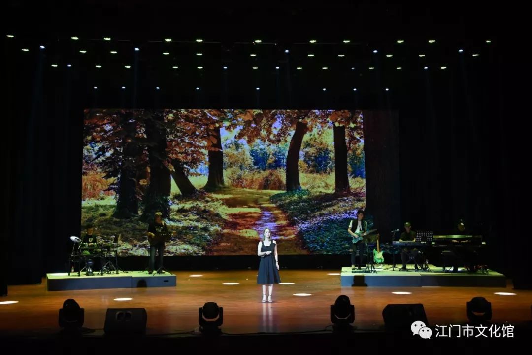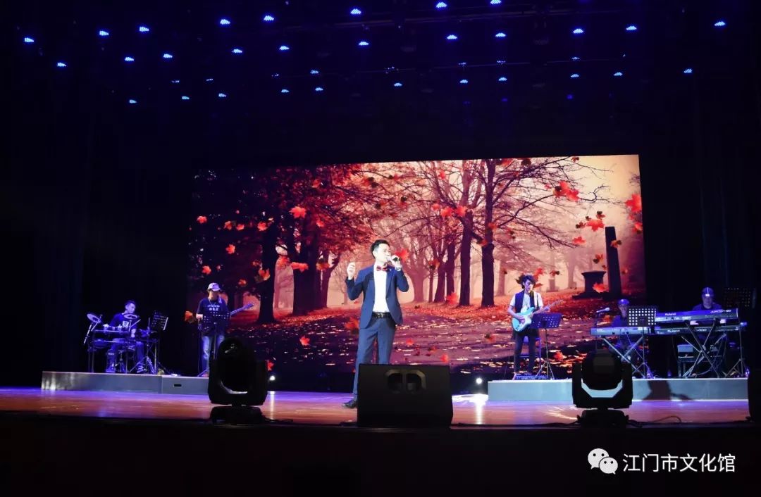 9月18日晚8点,江门市文化馆二楼文化剧场,新馆开馆活动周的第三场惠民演出“我和我的祖国”——“流淌的岁月”流行音乐晚会在绚烂的光影中,奏响了第一个音符。